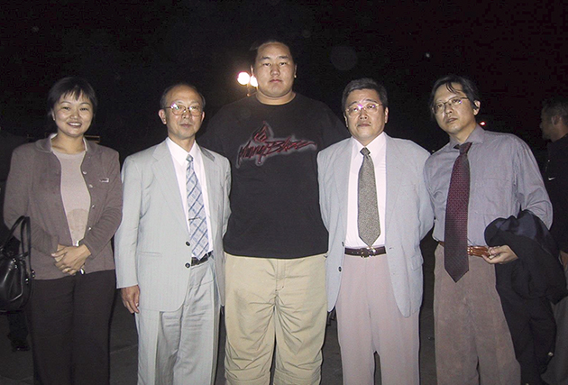 We, Dr Enkhem, Dr Kuroe, Dr Nogi, amd myself attended the party at the Bayangol hotel to celebrate promotion to Ozeki rank of Sumo wrestler Asashoryu, who became 68th Yokozuna later, and to Juryo rank of Asasekiryu, who became the Takasago master later.