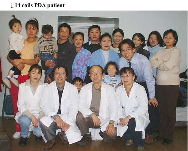 We first used Amplatzer Duct occluder (ADO) to close PDA at the visit in the end of July to early August, 2005. Dr Larry Meng from China was our proctor on this procedure. A group photo with him.