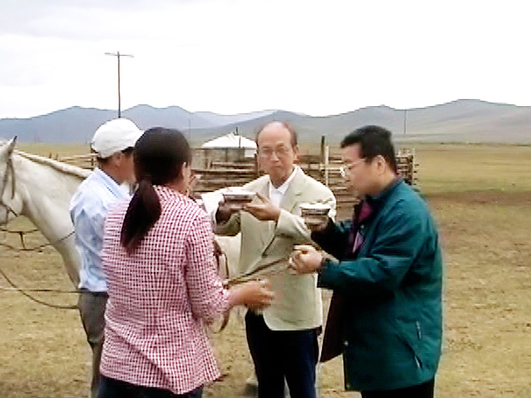 今回の渡航中、心和むことがふたつありました。ひとつは、第1回渡航の際、重症心不全症状を呈しており、コイル4個で閉鎖後元気になった動脈管開存児の家族の家へ全員が招待を受けたことです。ウランバートルから北西約50キロのあたりで遊牧をしている家庭で、ホルホグをごちそうになり、また治療の御礼にと馬をいただきました。これはそのままご家族に預けてあります。もうひとつは、島根医大へモンゴルからの留学生受け入れに大変貢献された春日行雄氏が私財を投げ打って設立・運営されている孤児院「テムジンの友塾」の訪問です。館内は清潔で、各々にベッドがあり、プレイルームには多くのおもちゃやテレビもありました。こどもらは素直に元気に育っていました。