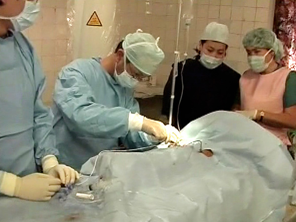 先天性心疾患の診断に不可欠な、カラードプラー断層心エコー装置がモンゴル国に導入されたのは、2000年12月に米国の慈善団体から数年前の型式の機種が寄贈されたのが最初で、2002年現在モンゴル全土でこれ1台のみ。モンゴル国立母子保健センターの小児循環器専門医師S. Byanbasurenらが、これを用いて診断を行っており、診断レベルは、日本の小児循環器専門医師に例えれば、レジデントの域に達していますが、経験不足から下した診断に自信が持てず、同国立第3病院(成人の循環器と心臓外科を担当)の心臓外科医師に対して適切なアドバイスができていないのが実情です。また、この心エコー装置も5分から30分も使うとオーバーヒートする状態です。確定診断に不可欠な心カテは、この病院では行われず、心エコーで手術が必要と判断された場合は、国立第3病院に送られ、この病院で心臓カテーテル・心血管造影検査の後、外科手術が行われますが、小児の病態生理に疎い医師が、成人のための装置や器具を用いて検査を行うために、診断精度が悪く手術成績も極めて不良、というのが現実です。