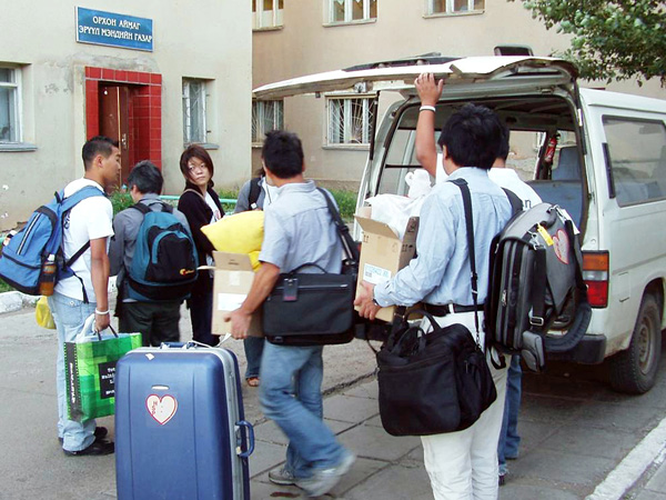 さらに、島根県出身横浜在住の春日行雄先生が私財で運営されているウランバートル郊外の孤児院「テムジンの友塾」へ、島根県出雲市塩冶小学校生徒さんから託されたチャリティー品を持って、活動初日の心エコー検査後に慰問しました。