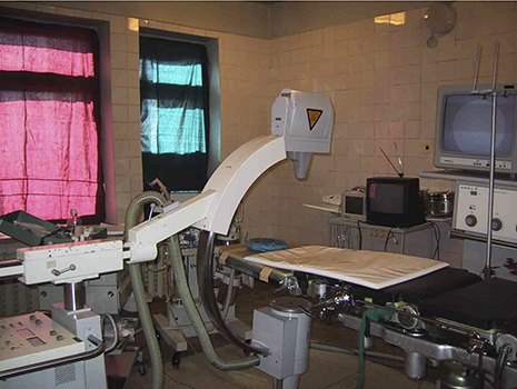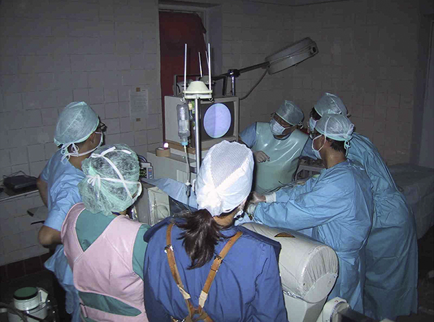 このころ、モンゴル国立母子保健センターには心臓カテーテル血管造影室がなかったので、第1回から第3回渡航の前半は、手術室の窓に暗幕を張り、ポータブルの透視装置を持ち込んで臨時カテ室にしました。