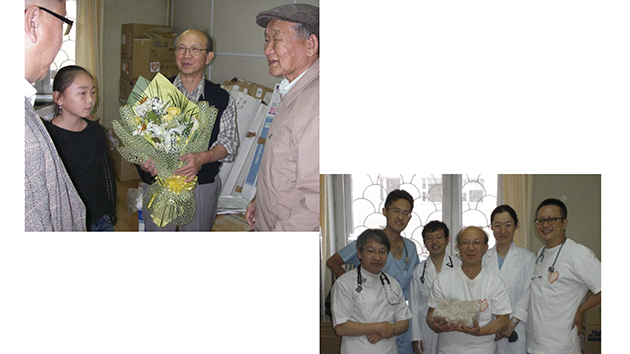 春日行雄医師(1920-2010)の写真です。日本モンゴル協会の初代事務局長、北極星勲章受章者で、定年後私財でウランバートルに孤児院「テムジンの塾」を設立・運営されていました。春日氏が、旧制中学時の同級生で島根医科大学の学外理事であった元出雲市長を介して島根医科大学学長に先生を紹介されたのが、このプロジェクトにおける人の縁の始まりと言えます。ちなみに、春日氏と矢野宏氏(初回渡航メンバー)や私の生家は2km以内の至近距離です。