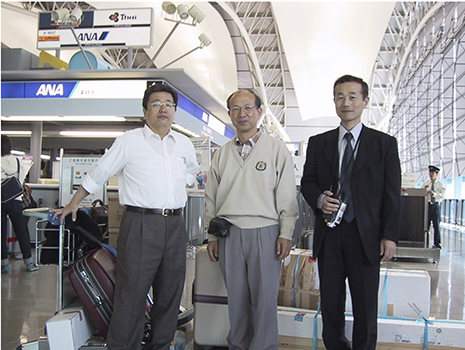 ちょうど20年前2001年10月3日の午後、関西空港出発時の黒江兼司医師・矢野宏氏と私で、我々の後ろに写っている医療器材を持って渡航しました。この時、気温は27度で汗ばむ気温でした。