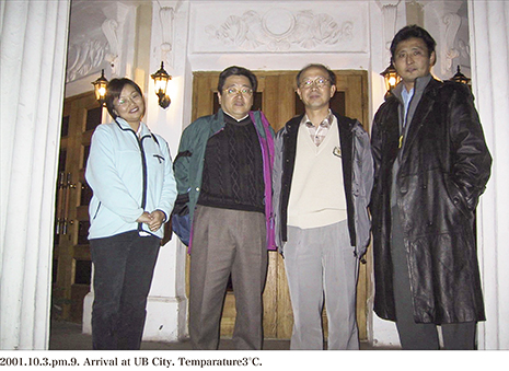 ウランバートルのボヤントオボー空港に到着した2001年10月3日 午後9時の写真です。先に帰国していたエンフサイハン医師と夫氏が出迎えてくれました。気温は3度でした。