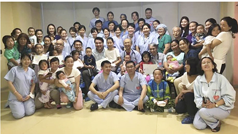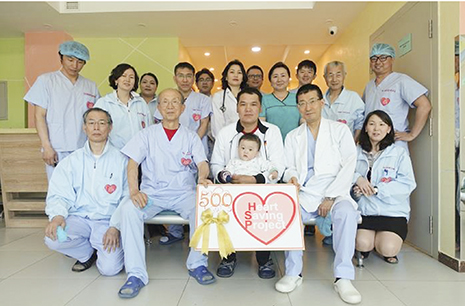 この時、ハートセービングプロジェクトによるカテは500例に到達しました。500例目の患者との集合写真です。