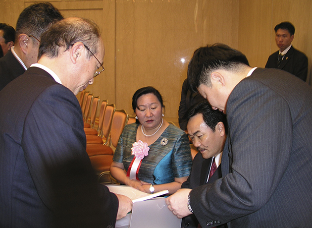 2003年12月4日、日本を正式訪問されたバガバンディ大統領の歓迎祝賀会が赤坂プリンスホテルで開催され、富田と私の2名が出席し、モンゴルでのそれまでの活動を報告しました。