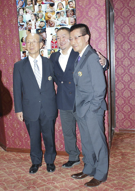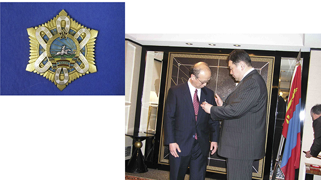 下は2006年3月27日の北極星勲章受章式の写真です。ホテルニューオータニにて来日中であったエンフボルド首相からいただきました。その後現在までに、ハートセービングプロジェクトの多数のメンバーが受章しております。