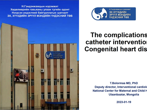 モンゴル国立母子保健センターのボロルマー医師が2023年1月18日(水)に来日し、20日(金)、東京千代田区一ツ橋で行われた「第33回日本先天性心疾患カテーテルインターベンション学会学術会議」に出席し、「モンゴルでの先天性心疾患に対するカテーテル治療の合併症」というテーマで発表を行いました。発表の合間を縫って積極的に多くの演題を聴講したり会員の方々と意見交換を行ったボロルマー医師から帰国後「大いに刺激を受けました。ありがとうございました」とのメッセージがありました。